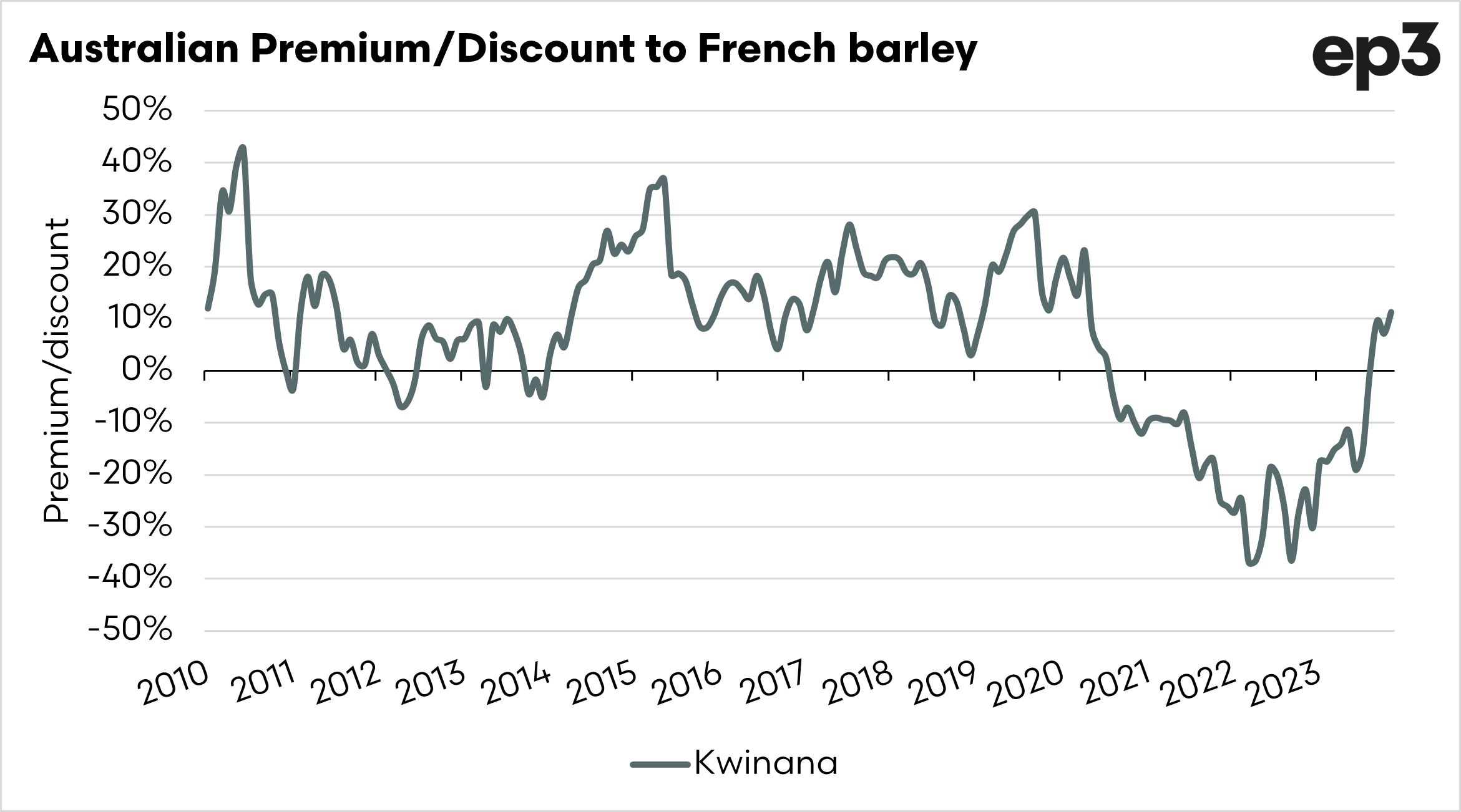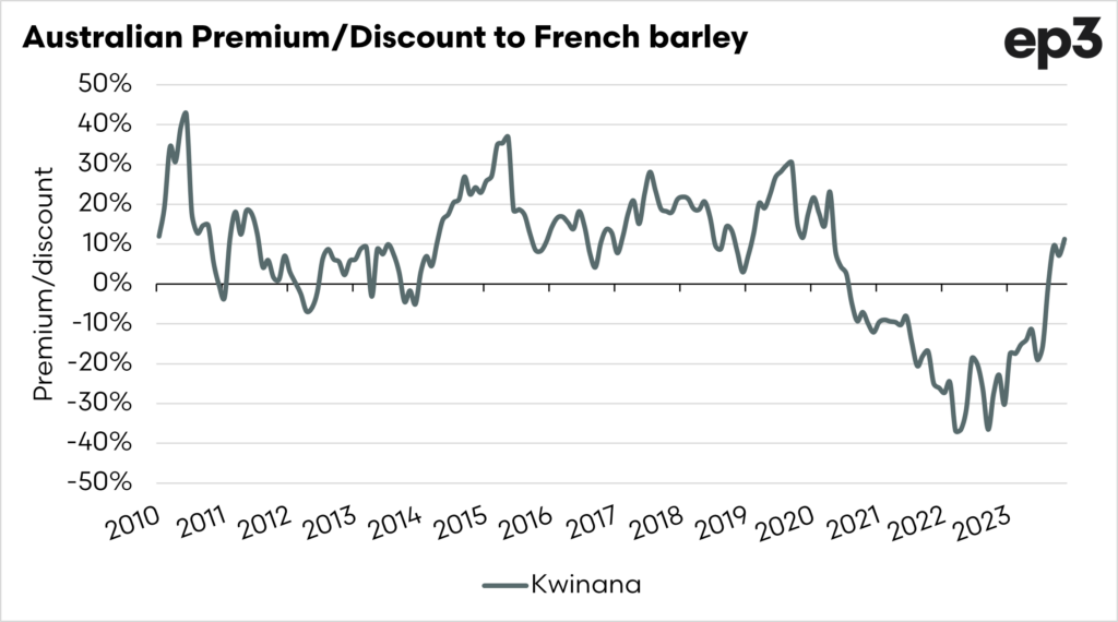 One factor that we can see is how quickly Australian barley has gone from being discounted to French values. Our pricing moved from a premium to a discount the month of the tariff and moved back to a premium on the month that the tariff was removed.