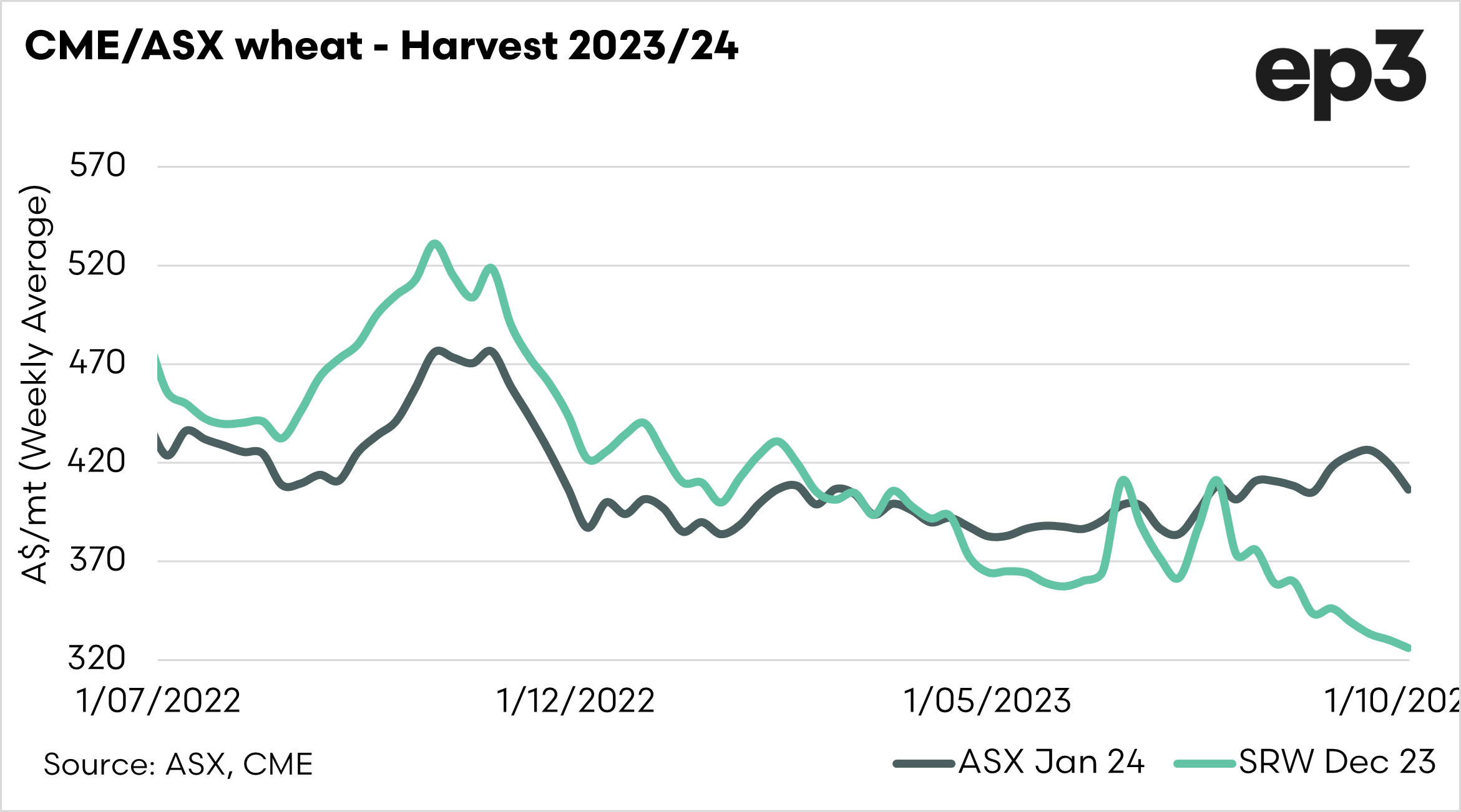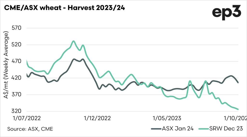 The global wheat market has come under immense pressure in recent months. It has bounced to the high A$330s but consistently struggles to maintain that level. December futures are currently trading at A$326.