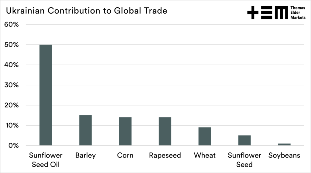 Russia is still managing to export grains, but Ukraine cannot export other than through overland routes. These overland routes, truck and train, cannot support large volumes of exports. The sea ports need to be opened to ensure the world is supplied with grains and oilseeds.