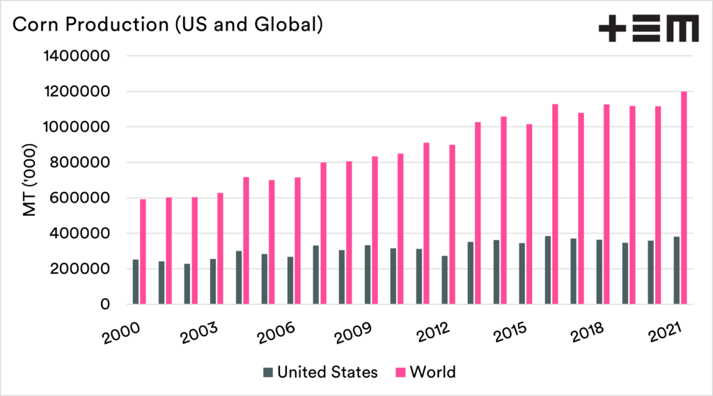 As we have mentioned previously wheat is following its own path, and no longer following the direction of corn. Last year it was as production fell lower. This year we are seeing a return to strong production. US corn is on track to be the highest level since 2016, and take silver position on the podium.