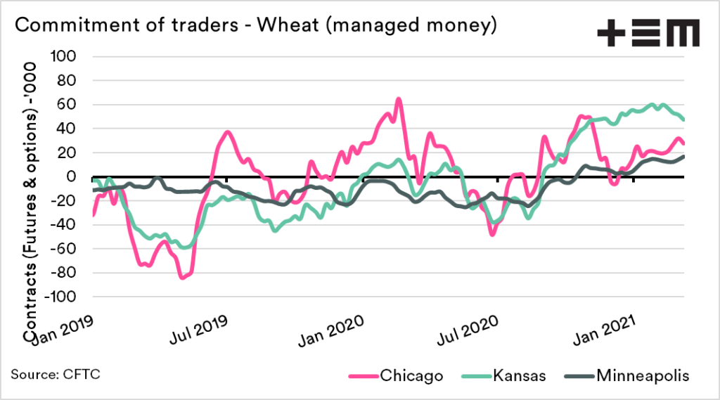 Chart 2: This shows the commitment of traders reports broken down into each wheat contract from the start of 2019.