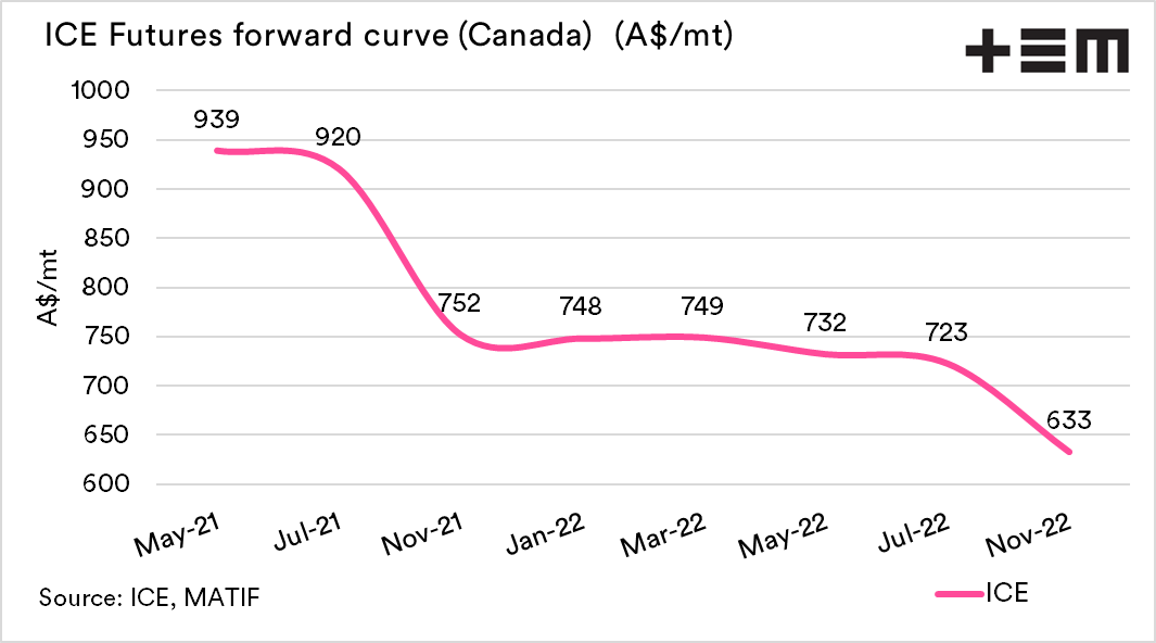 To me, this points towards real concerns about availability at the spot. This can be evidenced by the recent purchase of Ukrainian rapeseed for August delivery to Canada. The risk (at the moment) is for the current season, and concerns are less elevated for the 2022 harvest.