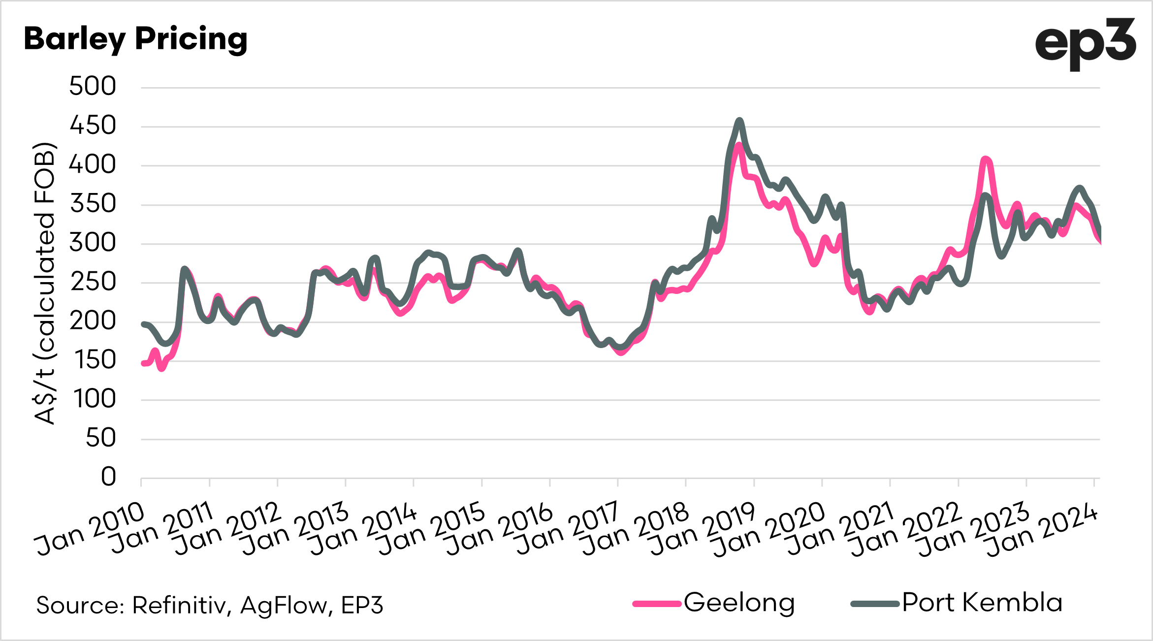At present, we are seeing the spread to lower grades increase, but still not to the levels seen in previous wetter years, likewise with the protein premium to H2. We could see these rise higher if the wet weather continues.