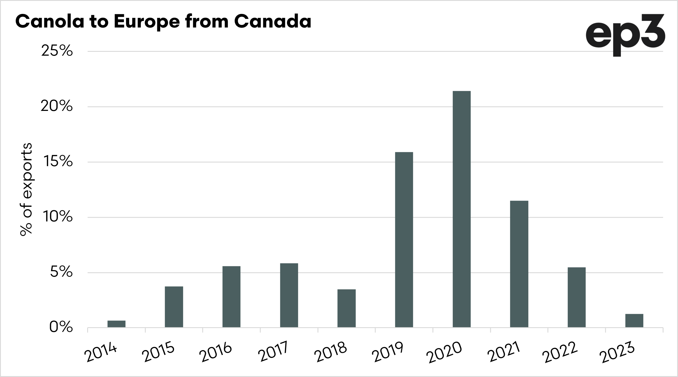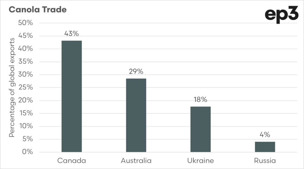 This represents the total of the overall global exports, and these four countries make up 93% of all trade. This means that by removing Canada, China will only have Australia and Ukraine to make up the big volumes.