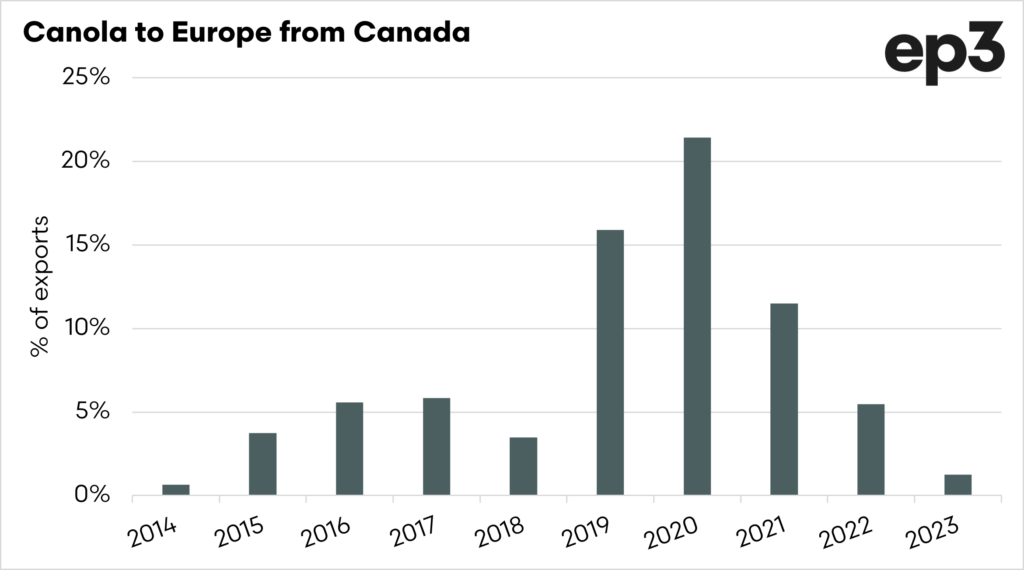 This is because, provided China still wants canola, then they will have to come to Australia. What makes it more interesting is that the demand from Europe may not be picked up by Canada, in the same way that trade flows changed with barley.