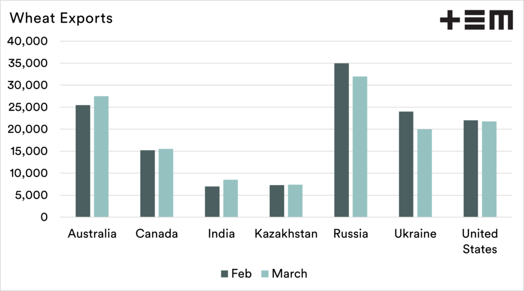 The biggest call out from the data was the change in exports. Clearly, with Russia and Ukraine engaged in a conflict, the volume of exports would decline. The total decline anticipated is 7mmt, 3mmt from Ukraine and 4mmt from Russia.