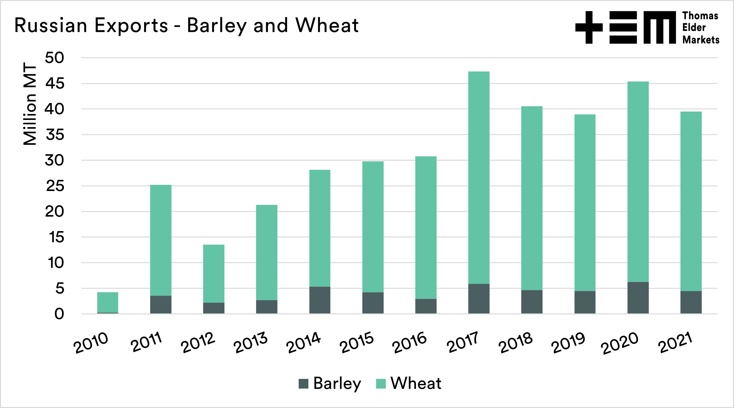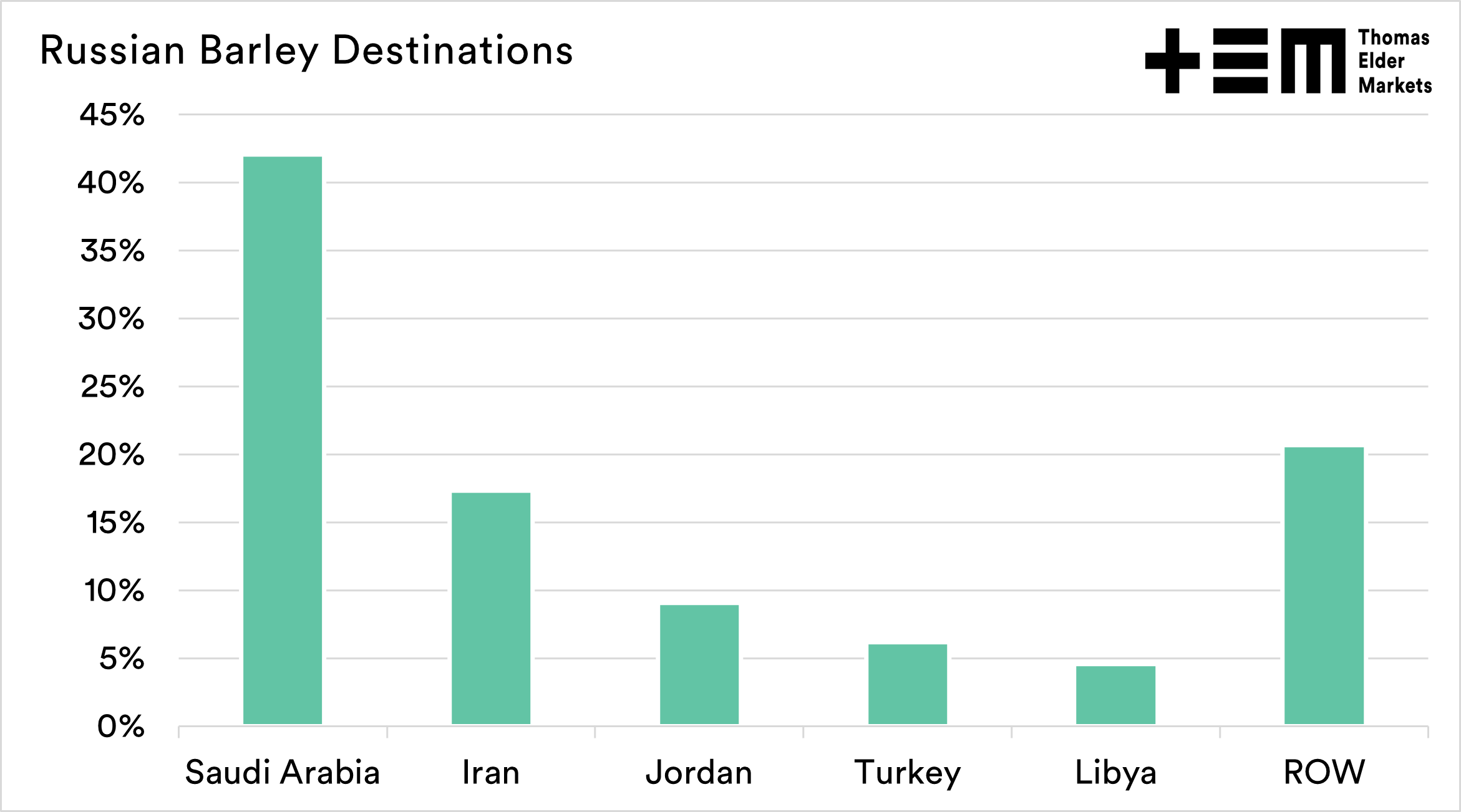 The majority of the barley and wheat traded by Russia goes to those where they have a geographic advantage. This is likely to continue.