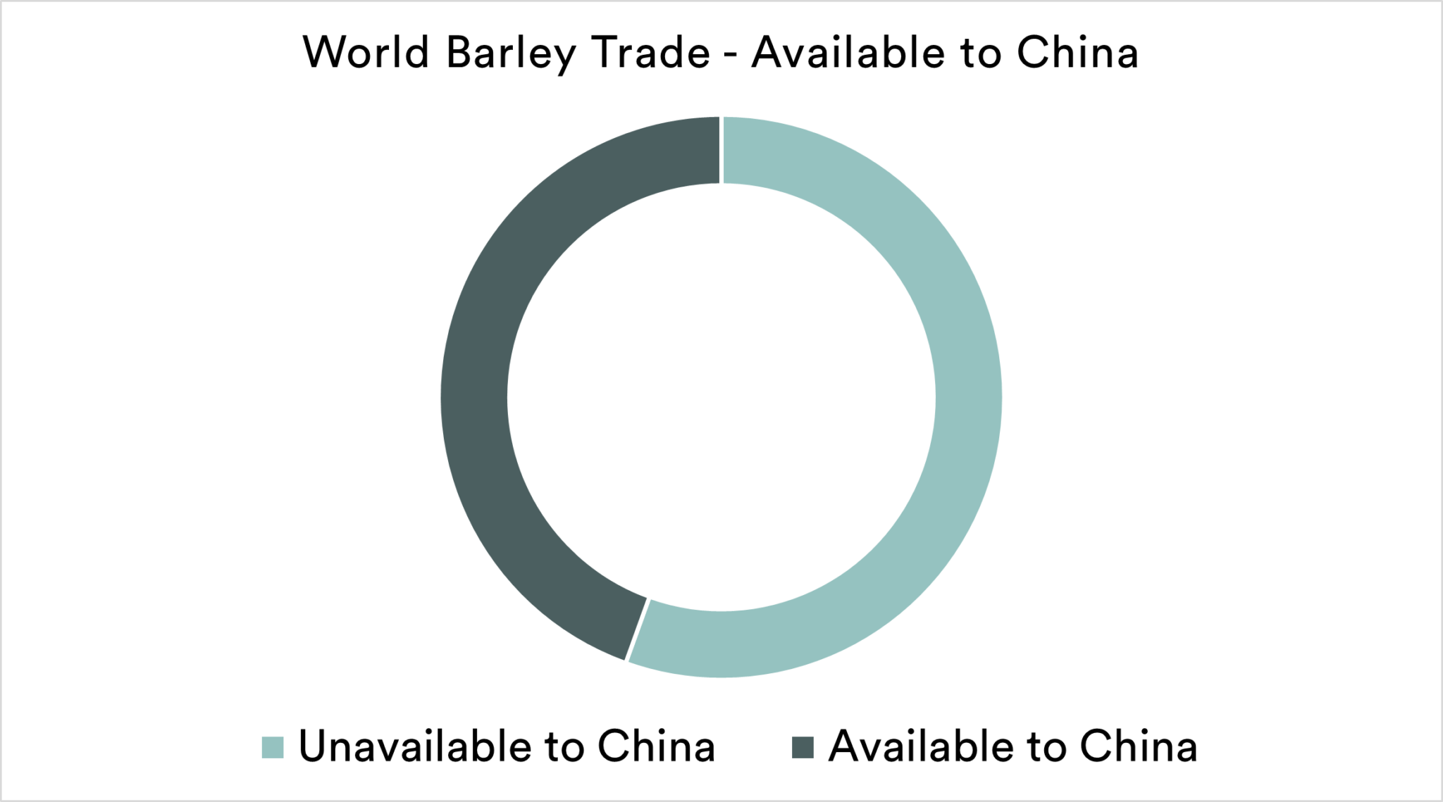 - Prices in Australia for barley are historically high, however, are lower than if China had been in our market.