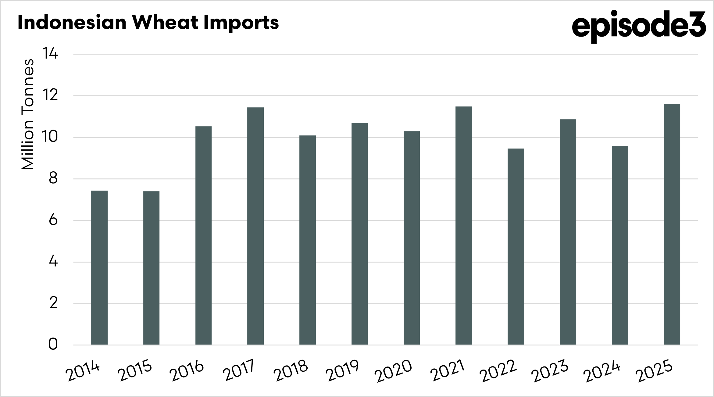 - Indonesia imports around 10–11.5 million tonnes of wheat per year, and Australia regularly supplies 4–5 million tonnes in strong production seasons.