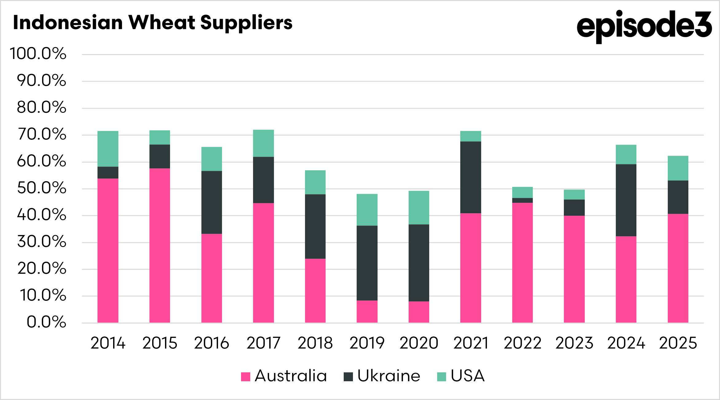 When Australian supply tightens, other exporters step in. Ukraine became a major supplier to Indonesia after 2016, shipping close to 3 million tonnes to the market in both 2019 and 2021. Canada typically supplies between 1.3 and 2.4 million tonnes annually, while US shipments have historically ranged between roughly 400,000 tonnes and 1.2 million tonnes per year.
