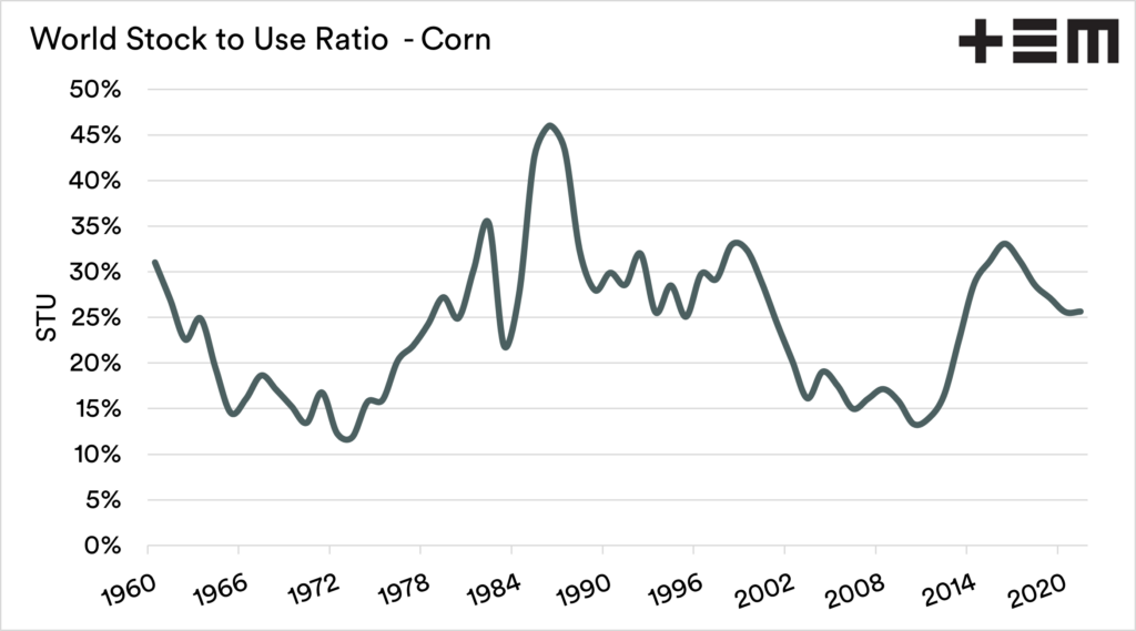 In the period since 2007, demand has increased. This has led to the stocks to use ratio matching the same levels as 2007. There could be fireworks if there are significant production issues in the northern hemisphere this year.