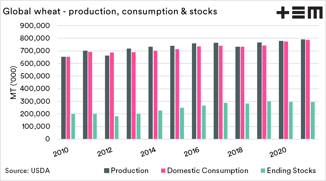 Another big year for wheat globally on the cards. Production for the coming season is estimated at 789mmt, which would be a record level.