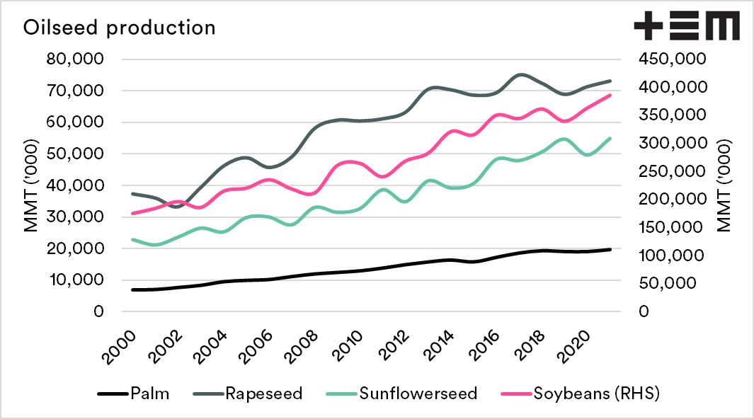 Higher prices are the cure for high prices, but it will take a while for that to filter through the markets. The high oilseed prices are expected to encourage plantings, with production expected to be higher across all the significant oilseeds.