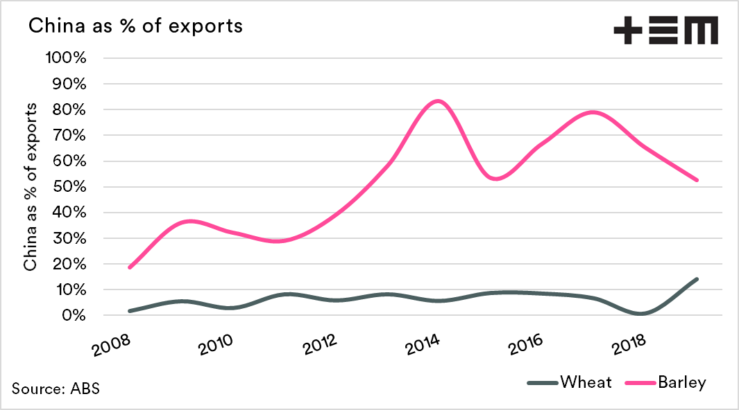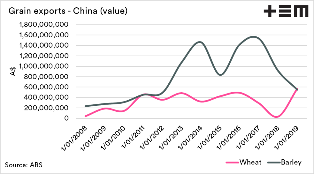 It is important to note that the wheat export market is considerably more valuable than the barley market. Therefore losing a market the size of China is not a minor issue; it can have an impact on our options.
