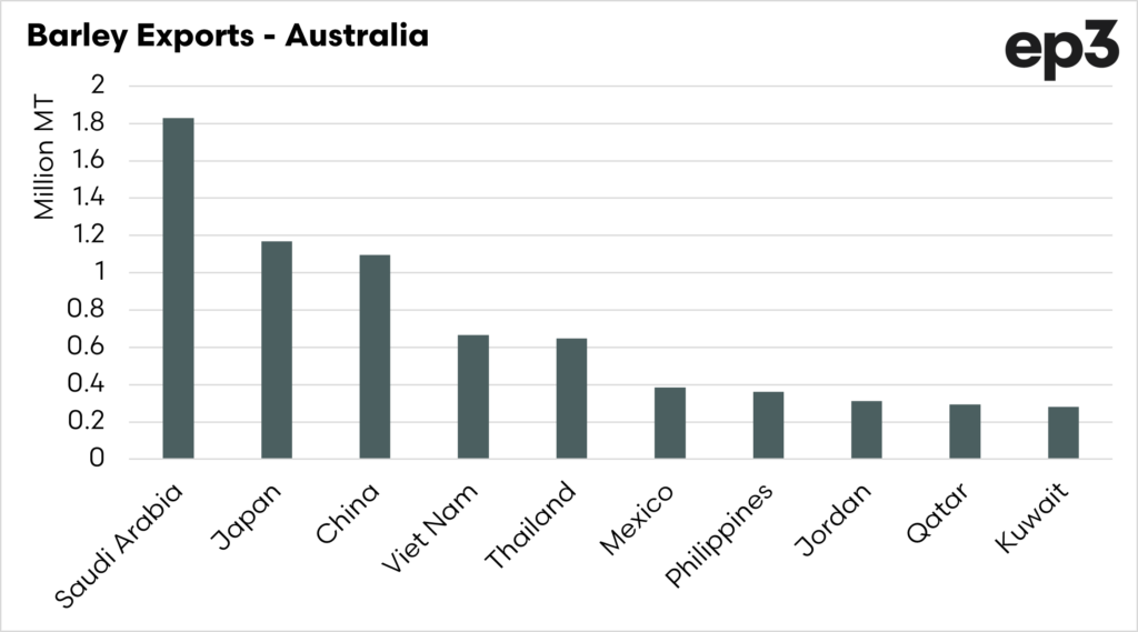 As we move into 2024, I expect we will see China emerge again as the country’s destination for barley.