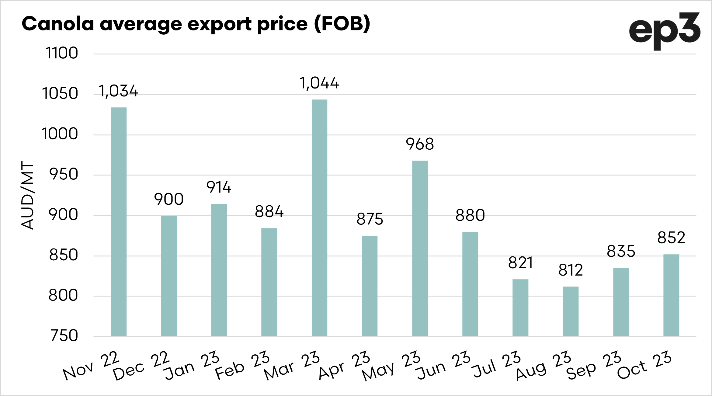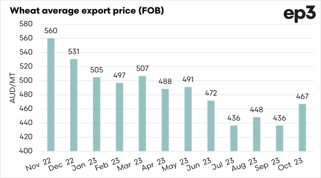 The charts below show the average price for each commodity converted into Australian dollars per tonne. This is the total value divided by the volume exported for each month to provide an indication of the trend.