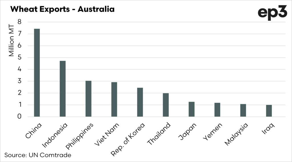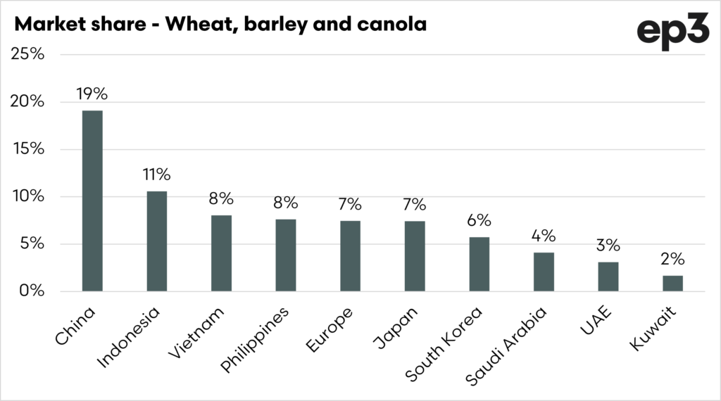If we look at the overall trade in our three main grain commodities, we can see that China is the biggest customer by a healthy margin. The Chinese share of our grain trade would be substantially higher if they had purchased more than three months of barley.