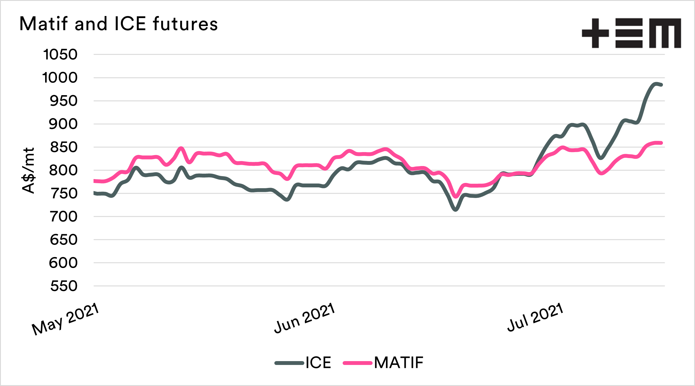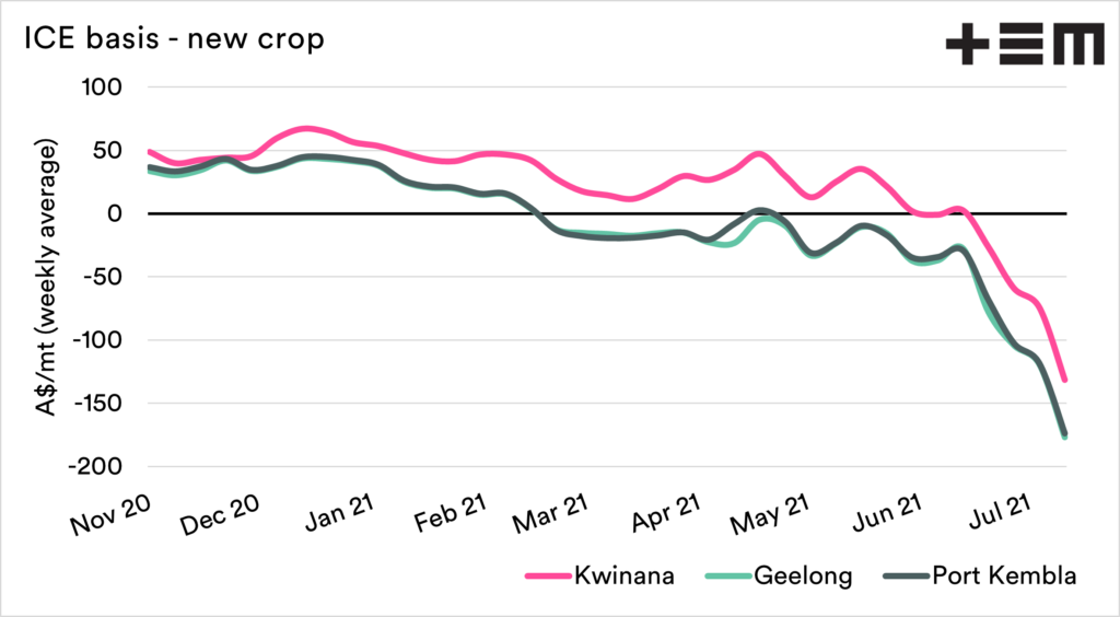Our basis (premium/discount) over ICE futures is at extremely low levels. This is to be expected and is reflective of a Canadian drought premium. This is similar to the ASX during the recent drought; Australian pricing rose to a high level against the rest of the world.