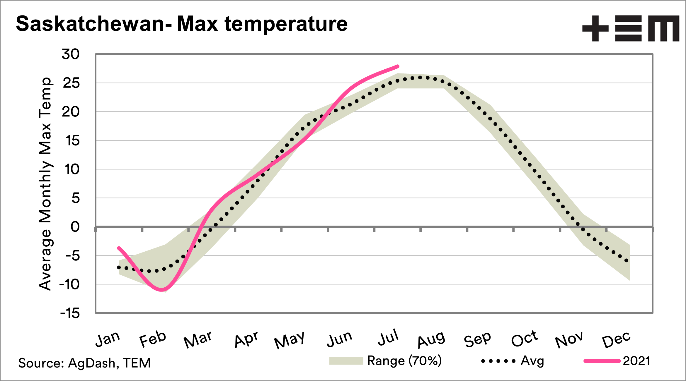 This season has been abysmal in Saskatchewan. During June and July, the average maximum temperature has been higher than typically expected. In 2021, June has been 24°C versus an average of 21°C. July has been equally bad at 27.88°C, versus 25.3°C.