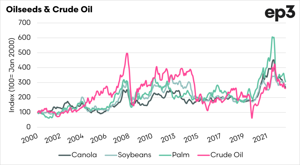 • Energy prices were high, and that correlates with the oilseed complex.