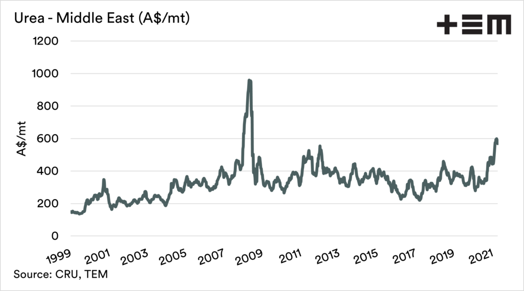 At the moment, middle eastern urea, where we source our volume, is trading at A$637; this is a rise of A$258/mt from the same week last year.