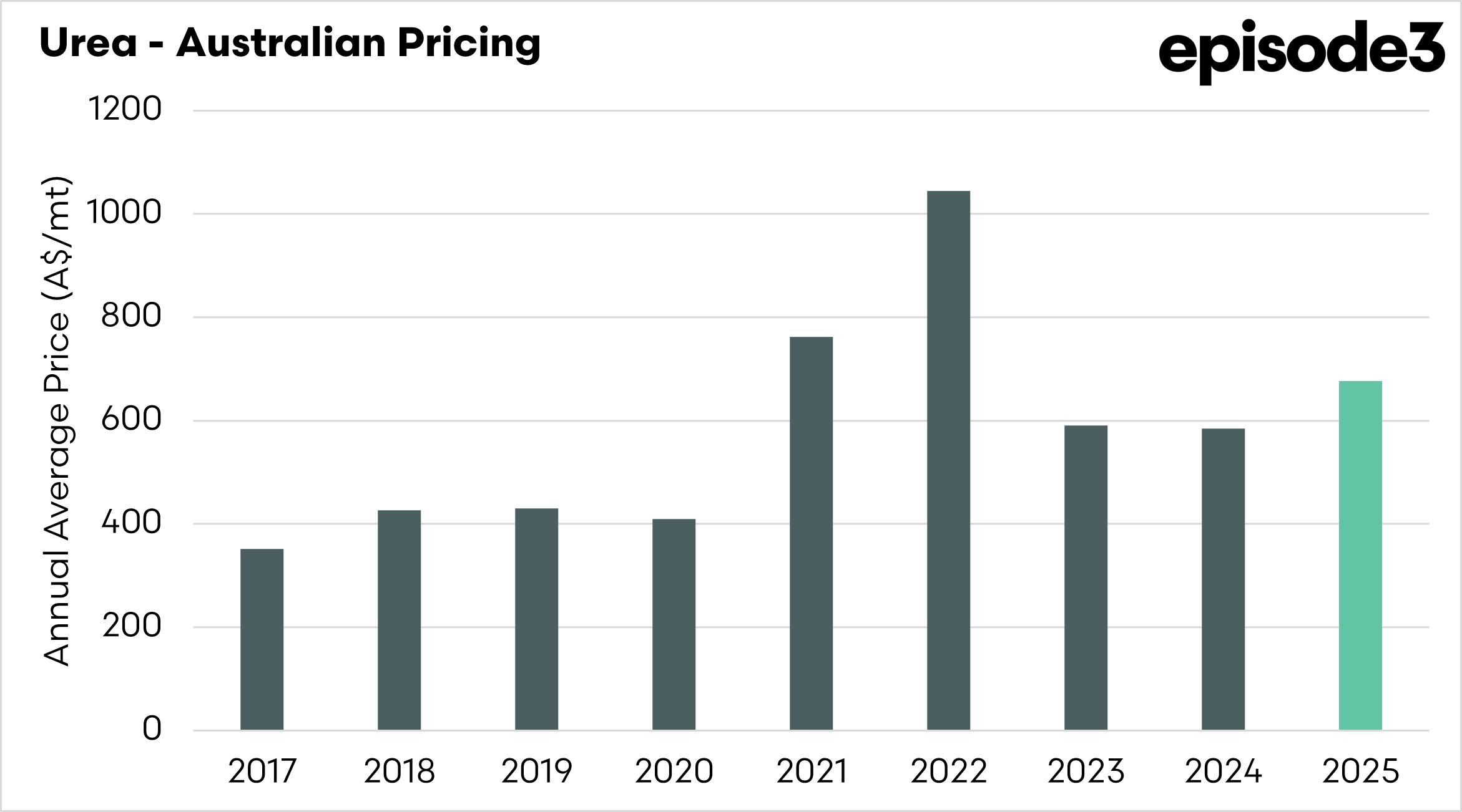Urea has traded around the A$600 mark for most of the year, but we have seen a substantial increase in recent weeks. In December, the average value was A$600-620. It has now increased to A$680.