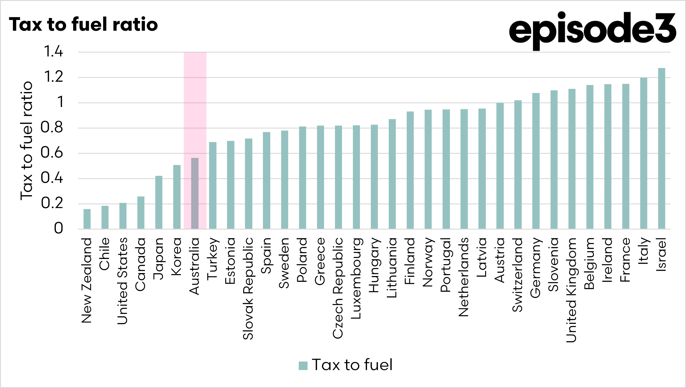 Australia sits in the middle when it comes to fuel prices and taxes. The average fuel price is 119¢/litre, with 67 of those being tax. That means more than half of what Australians pay at the bowser is government tax.