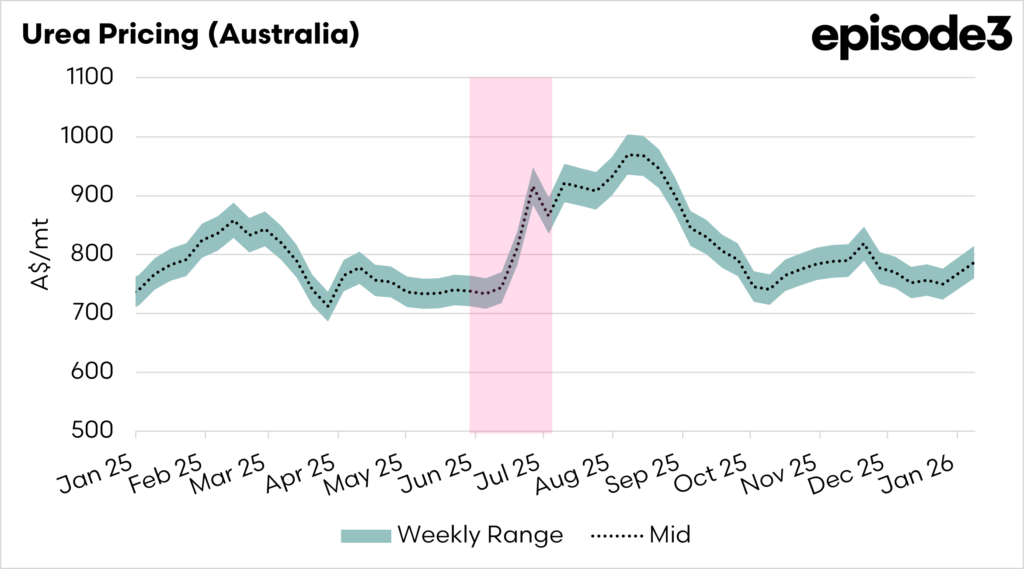 Fertiliser markets are particularly sensitive to geopolitical shocks because supply chains are highly concentrated and production is capital-intensive. Urea plants cannot be switched on and off quickly, and any disruption to gas supply, labour availability, or export logistics can have an immediate impact on global availability.  Australia, as an import-dependent country, means price signals often move well before physical shortages emerge, compressing the decision window for growers and increasing the risk of paying peak prices during critical purchasing periods.
