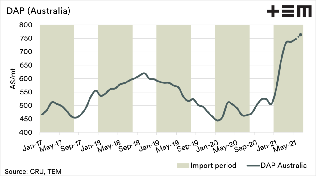 We have worked with independent fertiliser analysis firm CRU to develop theoretical pricing for Urea and DAP shipped to Australia.