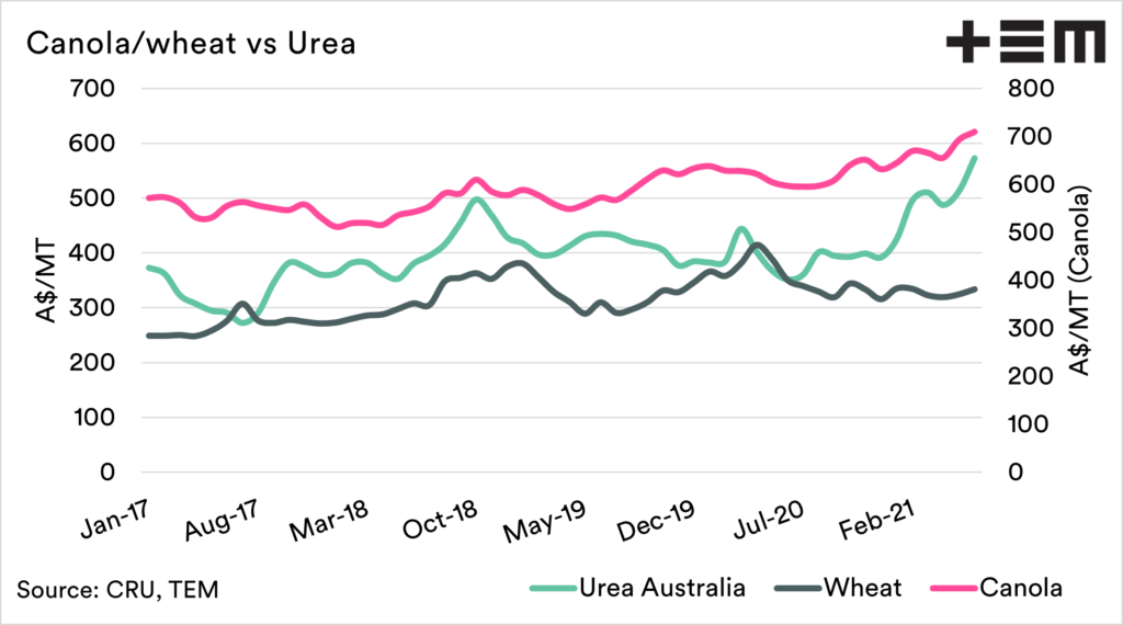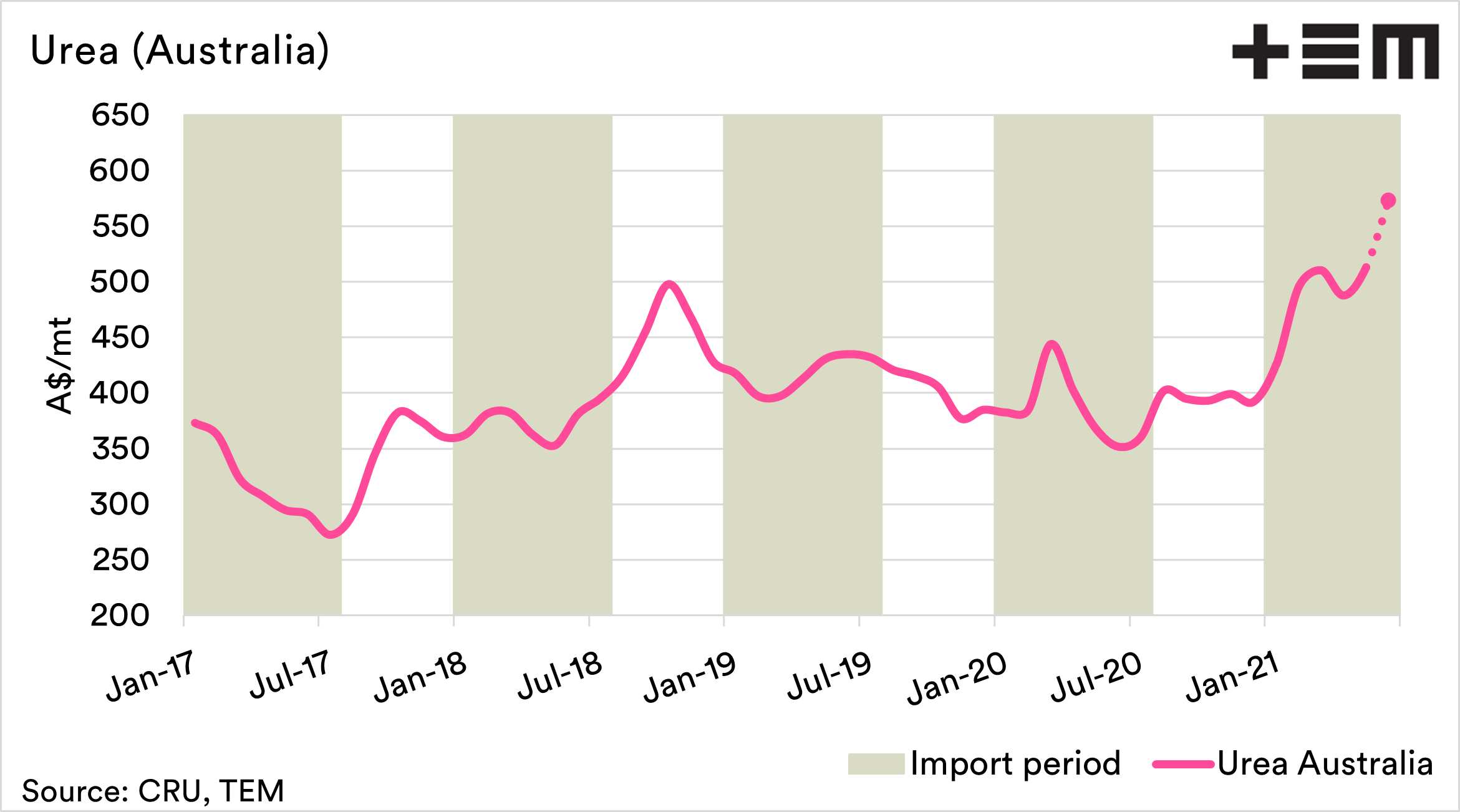 11/6/2021 – Please note Urea chart was updated as it was not displaying correct month. Figures quoted of A$573 in the article text was correct.