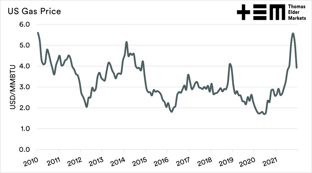 The biggest driver of fertilizer pricing is energy. Whilst there have been factors such as the Chinese ban, this is a secondary factor primarily driven by escalating fertilizer prices – caused by high energy. So what are energy prices doing?