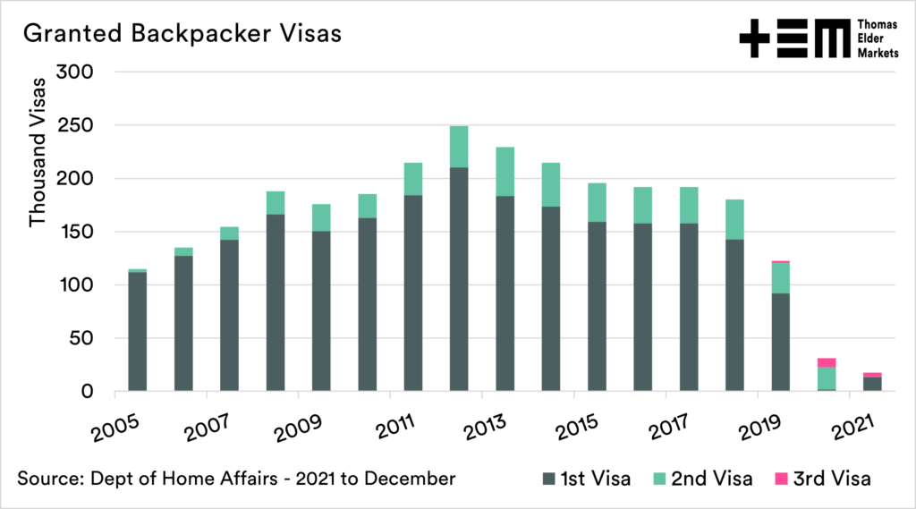 The reliance will be on new applicants and third-year vias. Only 8% of the average number of backpacker visas have been granted roughly halfway through the year. The shortage is not going away anytime soon.