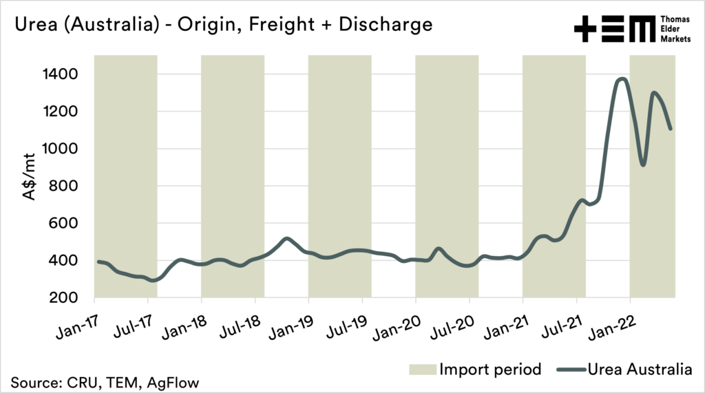 Our cost and freight fertilizer indicate the purchase cost of Urea, freight to Australia, and discharge into port. It is not intended to be an exact number but more to indicate the trend.