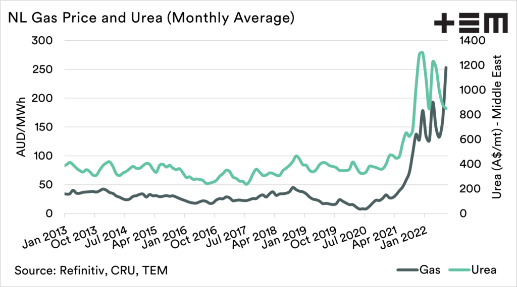 There is a strong relationship between urea and gas pricing. So far, gas has been increasing this month, but urea has come under pressure.