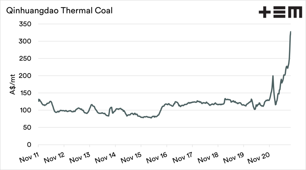 There is speculation this is in part due to a reduction of Australian coal purchases through it’s ’embargo’. The reality, though, is that coal is at record pricing levels.