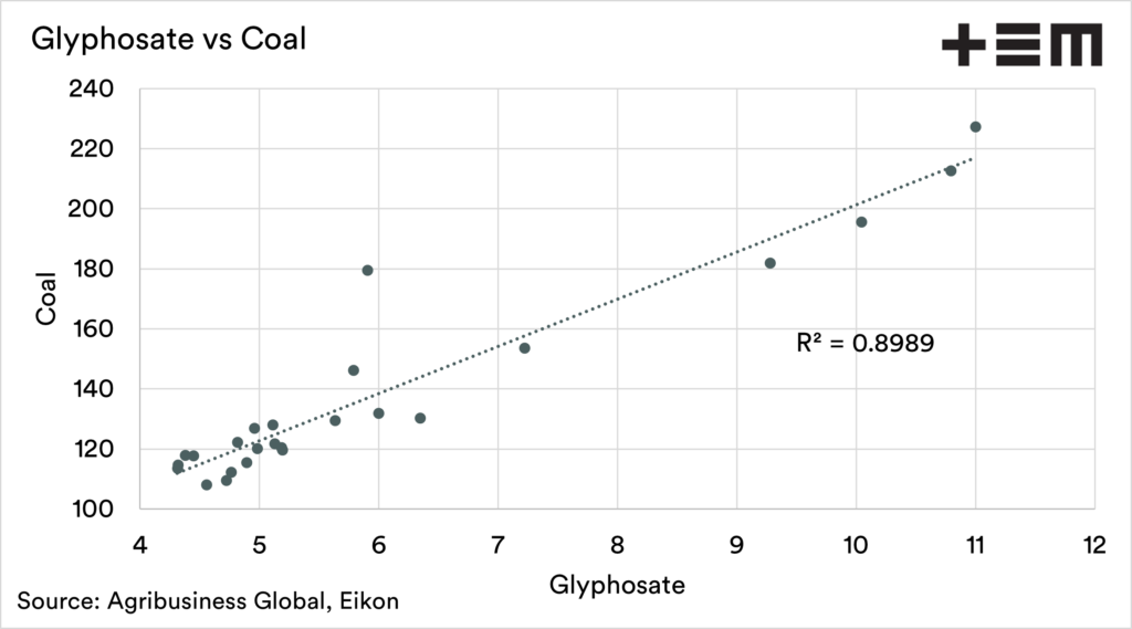 Expectations are that due to the higher energy costs during September, with coal up 42% since the end of August, we will likely see increasing glyphosate costs.