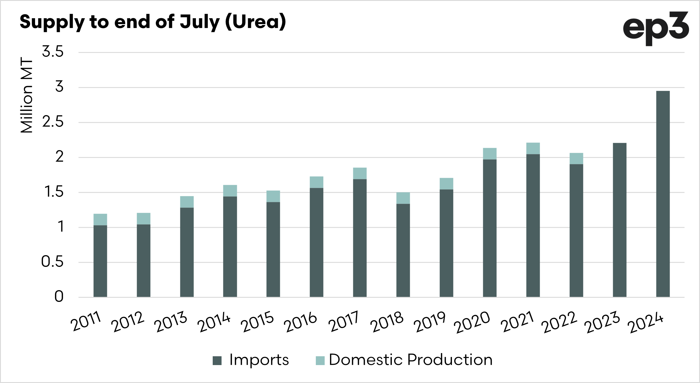 At the moment, urea pricing has increased during the past month, but still remains a long way from the high levels of recent years.