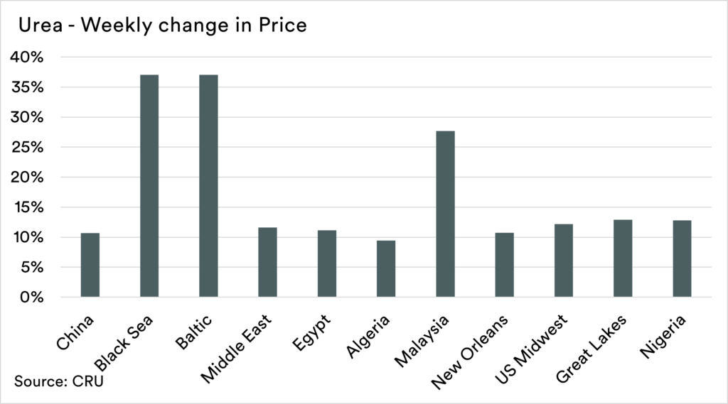 The second chart below shows the change in the average price of Urea around the world on a week-on-week basis.