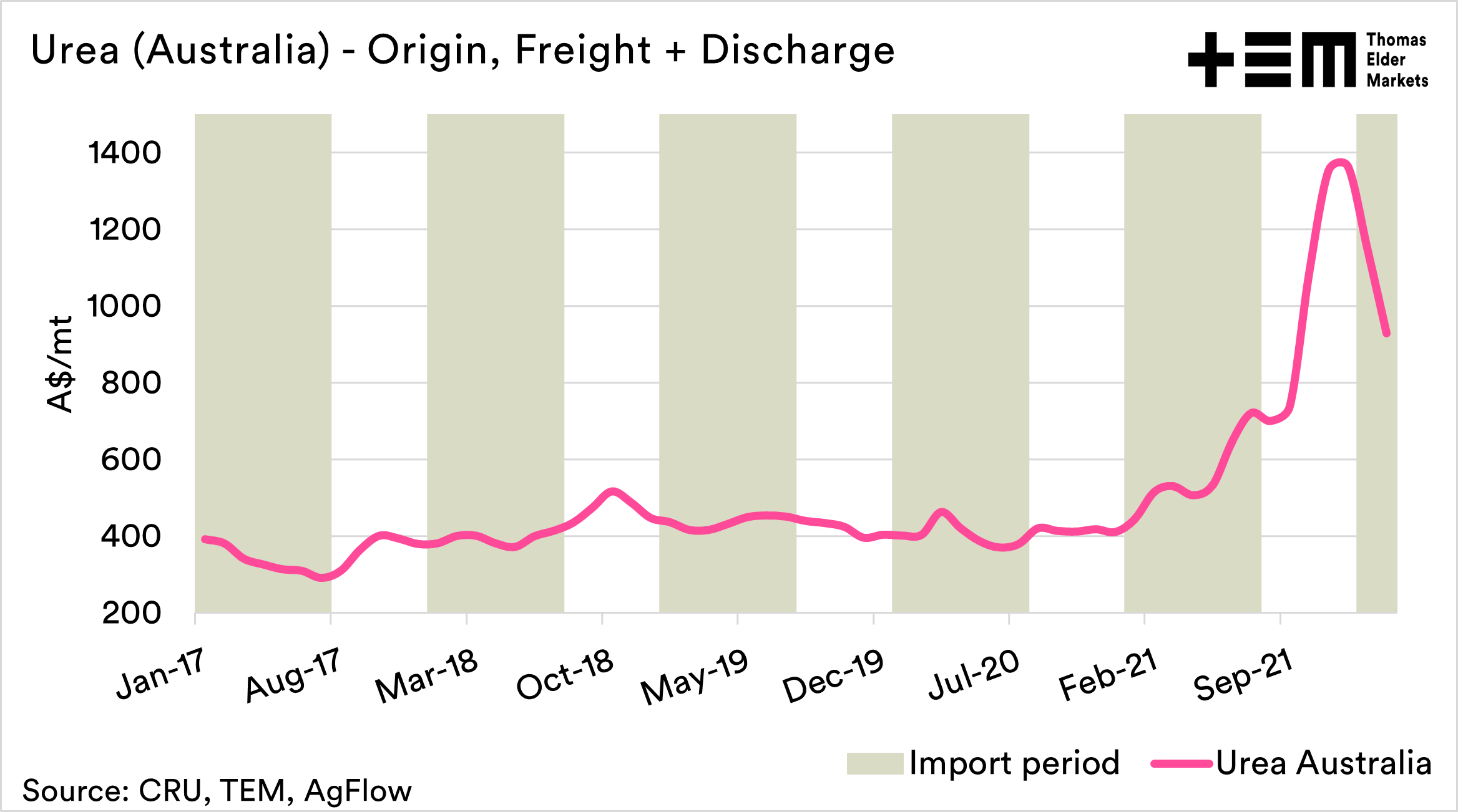 The unfortunate factor is that the price falls overseas may not be reflected in Australia in time to reduce the costs farmers are facing this year. Even with the falls flowing through on a 1 for 1 basis, it is still high prices compared to recent years.