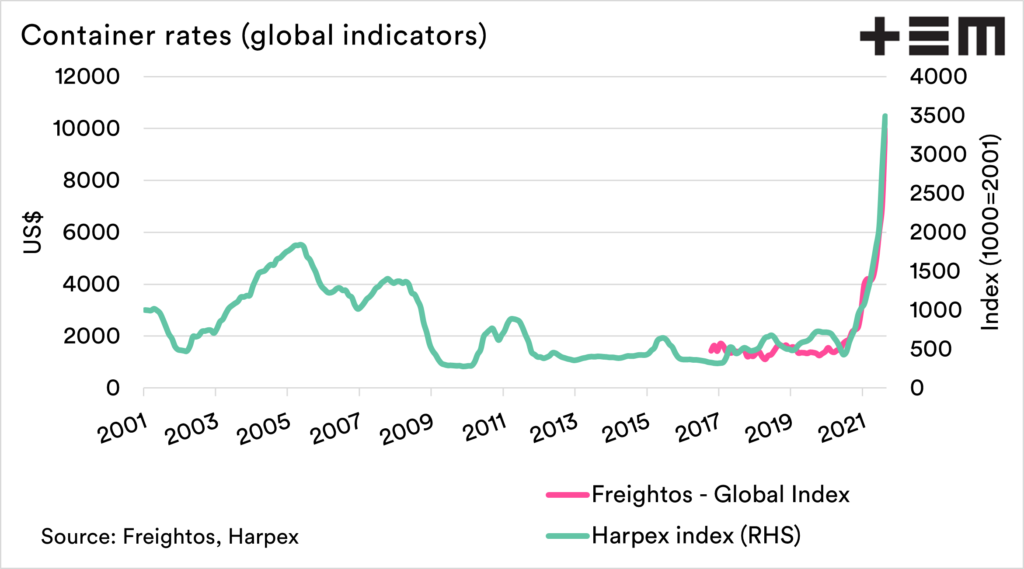 The past year has been hectic. One of the most significant impacts of the lingering COVID pandemic has been on freight rates. The cost of freight is an area which we regularly cover. This is because we are so heavily reliant on exports for the majority of our commodities.