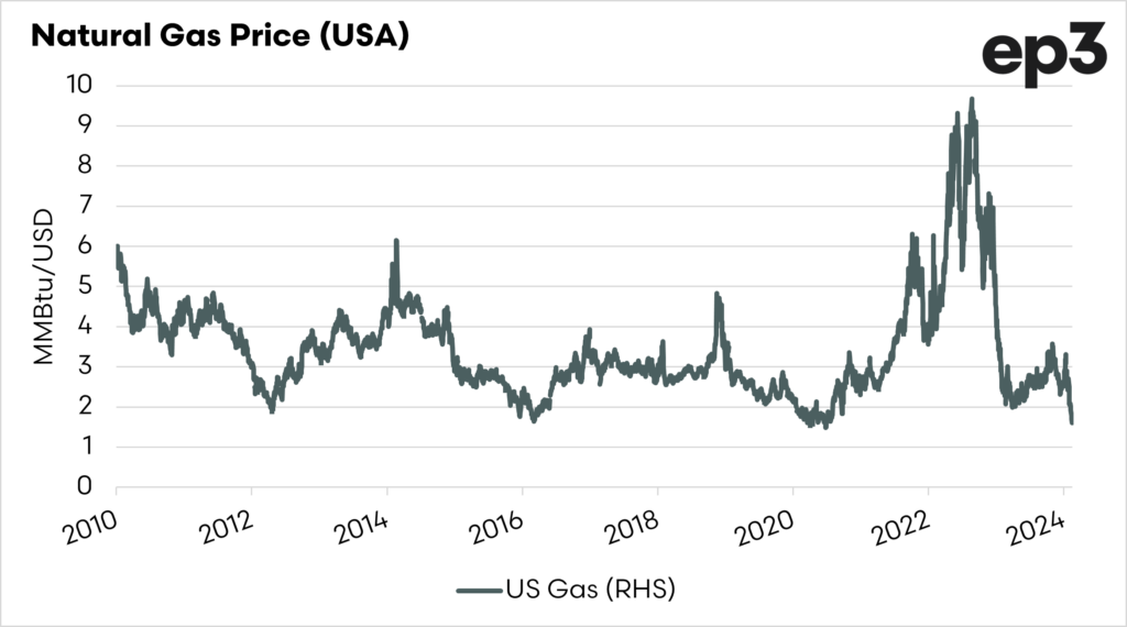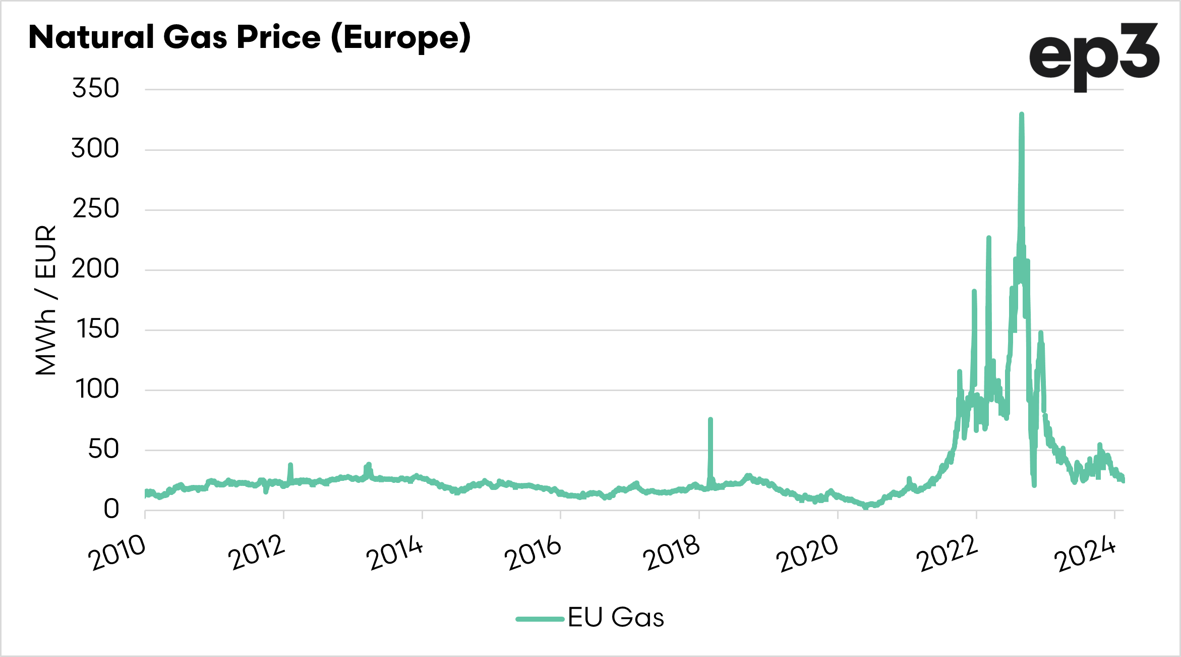 In the last couple of years, we saw natural gas rise to extreme levels due in part to the Russian invasion of Ukraine.