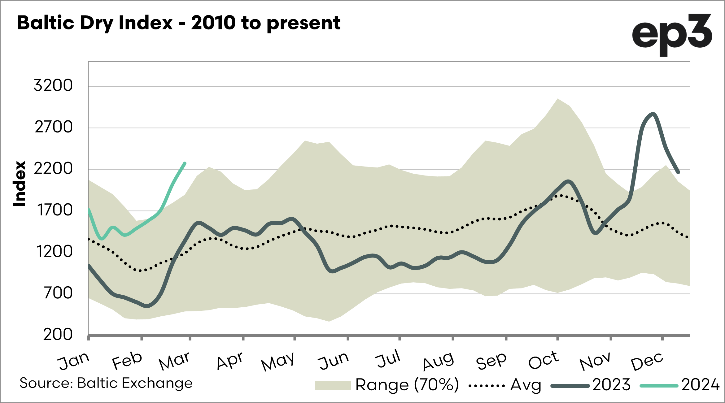 In 2024, the baltic dry index (represents bulk) and the container index increased strongly. +This adds costs to our inputs and the cost of sending our export commodities.