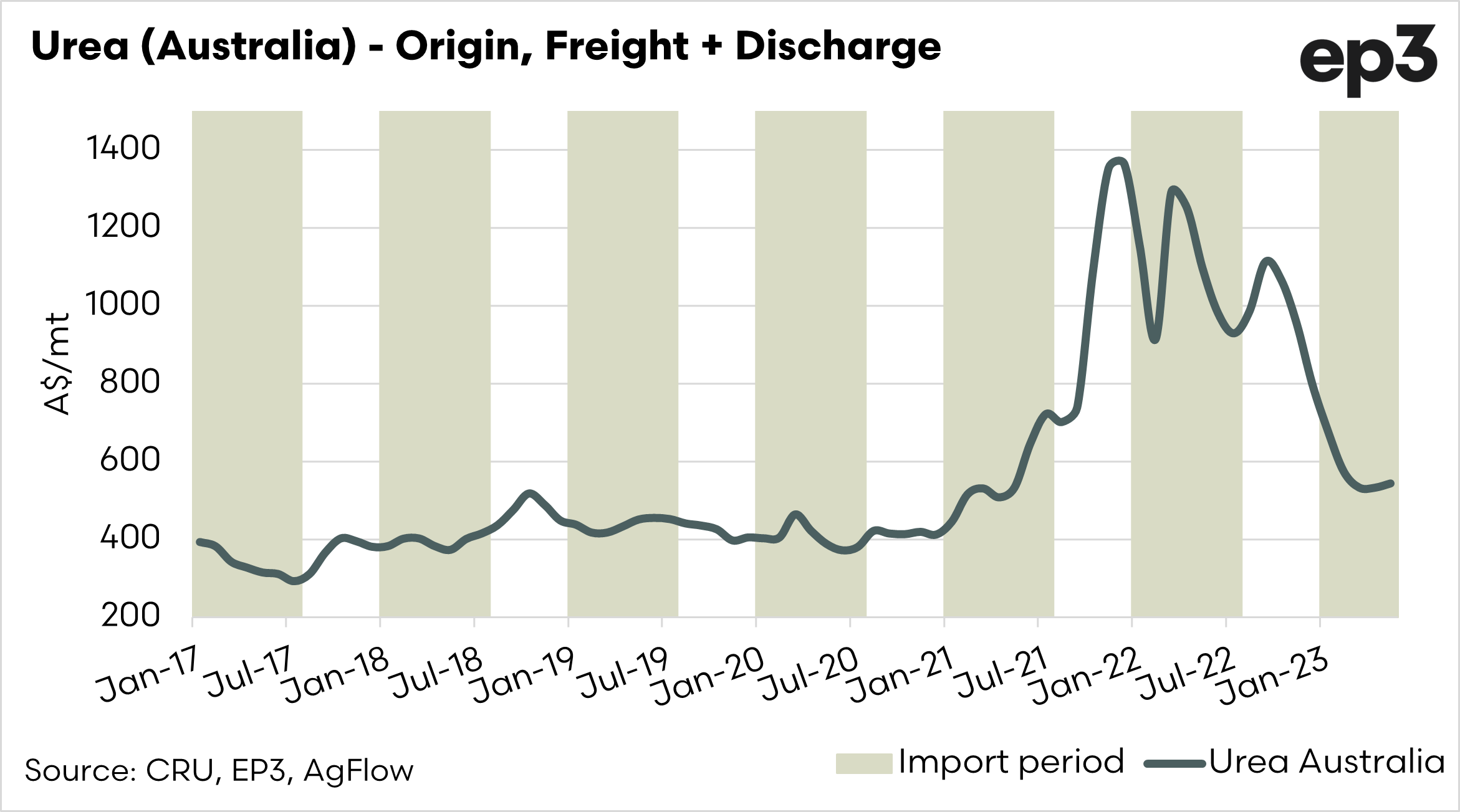 Globally urea prices have fallen in 2023, and for the past two months have pretty much stabilised.