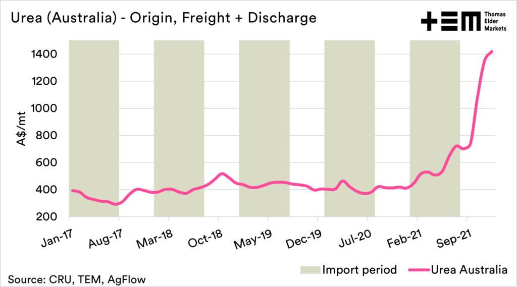 Since October, we haven’t published the cost and freight model for fertilizer into Australia on the EP3 website (see here). Although we did publish some updated charts on our social media, so if you’re not following us on twitter or linkedin – get on it.