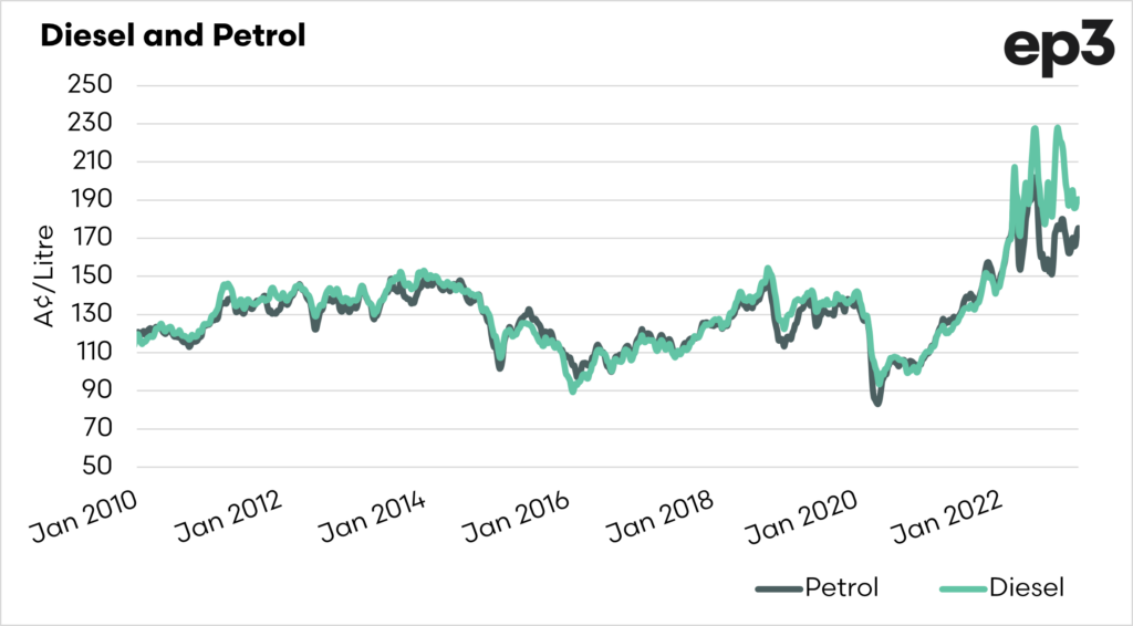 It’s odd to think that these prices are a bit of a relief when the reality is that the average price of diesel over the past decade was A$1.27/l! It just goes to show how quick perceptions change on price.