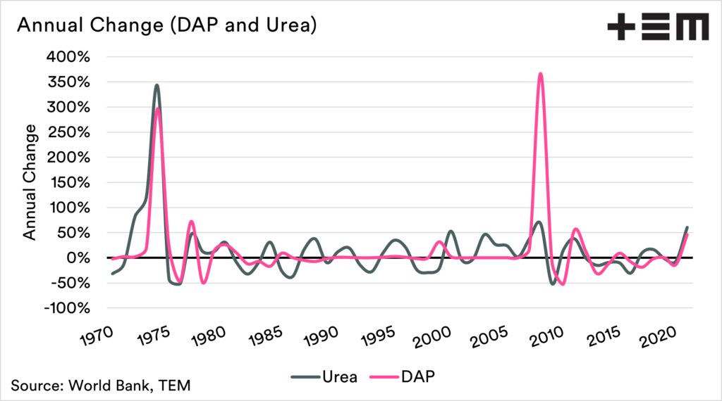 Energy was the primary driver during the largest rise in fertiliser pricing during 1977. Whilst I personally was only a twinkle in my father’s eye during this period, it was a time of great upheaval in energy costs.