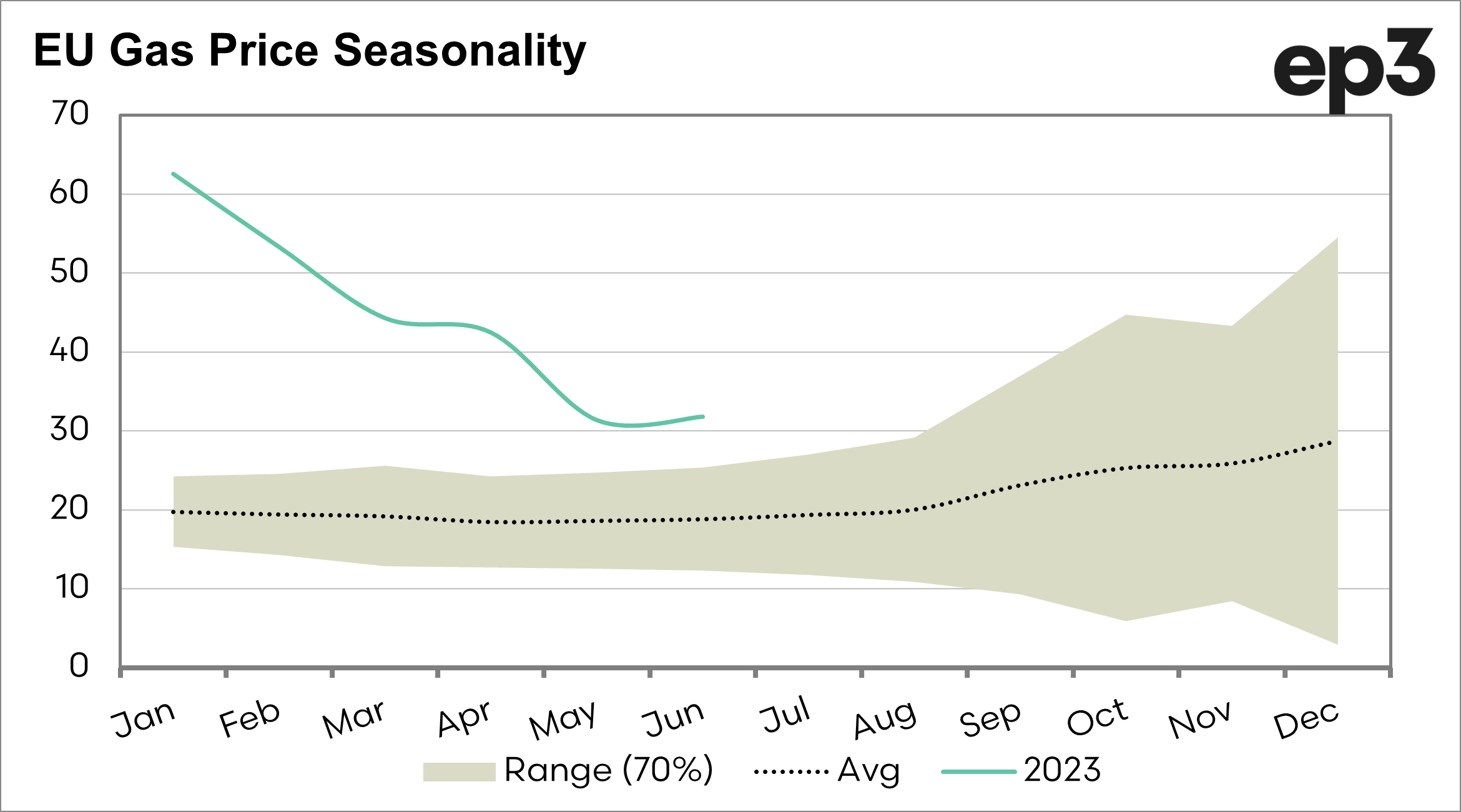 It is the weather that typically drives natural gas prices. As Europe moves into winter, the demand rises for gas for heating. As we move into European summer, this demand drops.