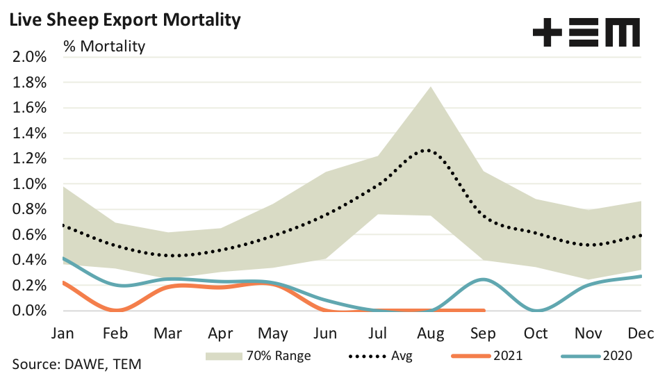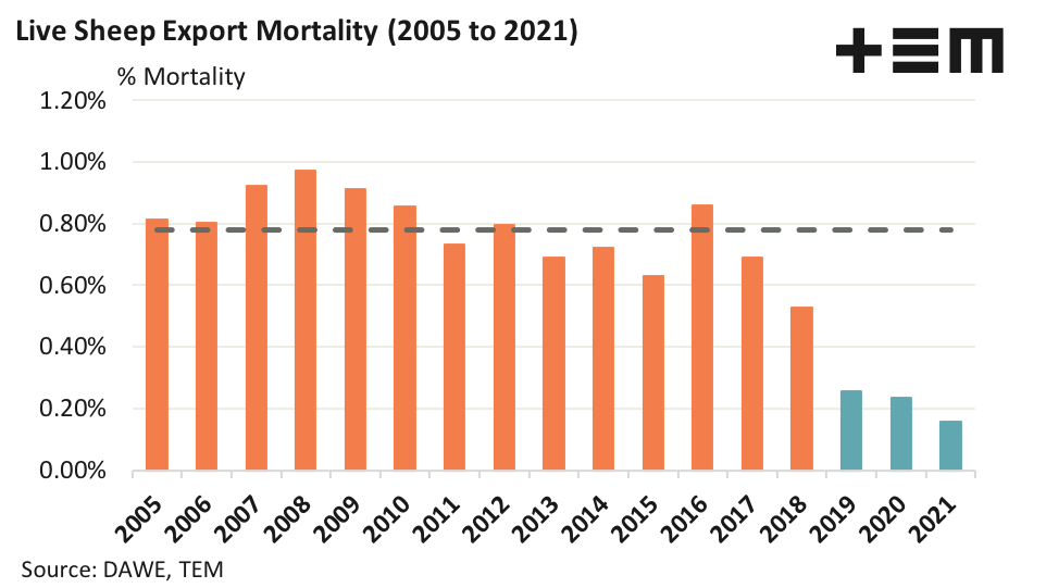 - Prior to the introduction of the northern hemisphere summer moratorium in 2019 the annual average live sheep mortality rate was nearly 0.8%.