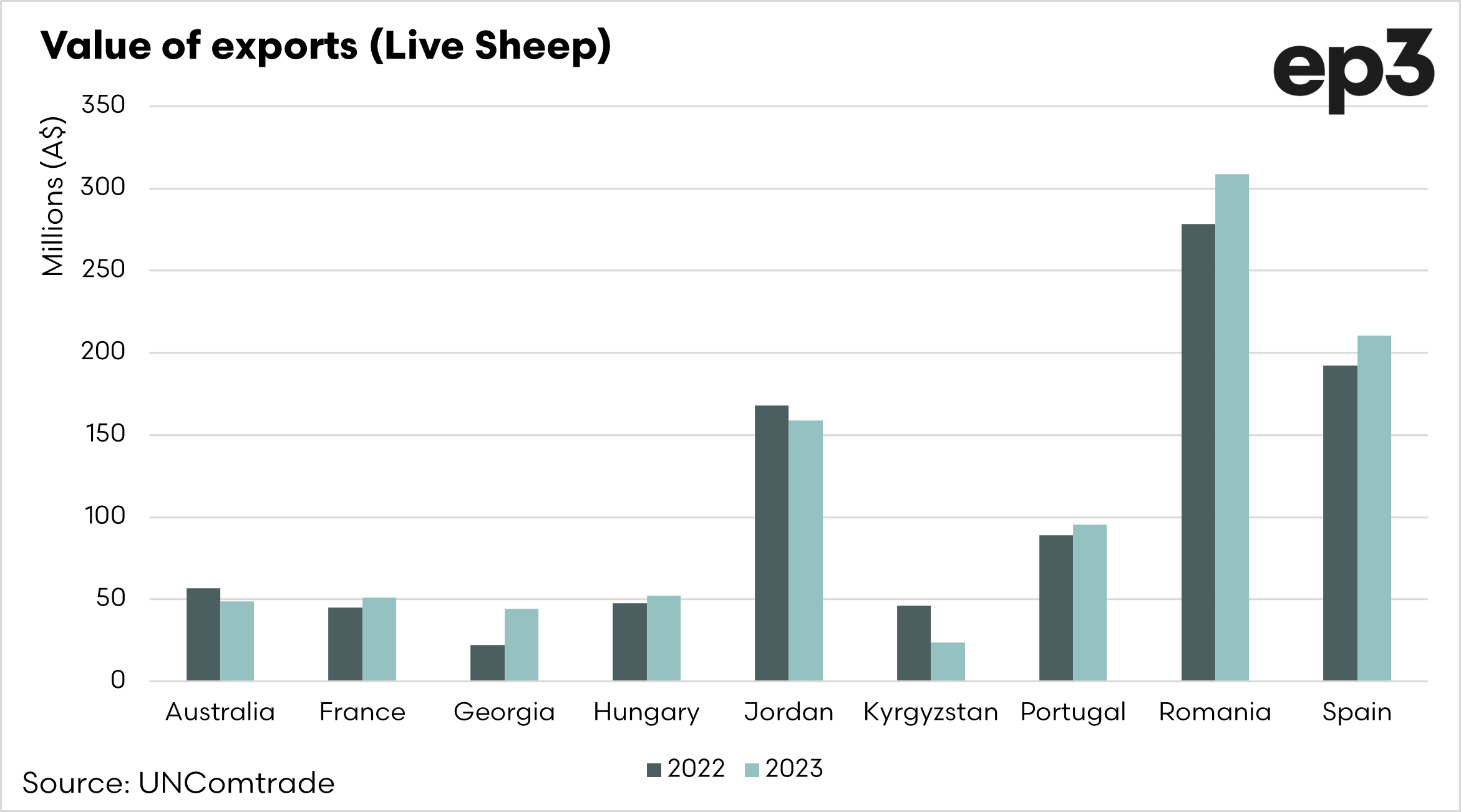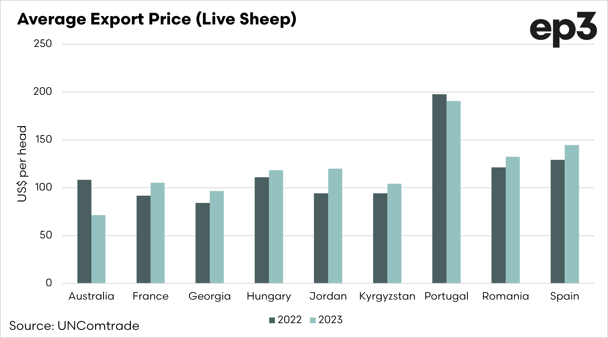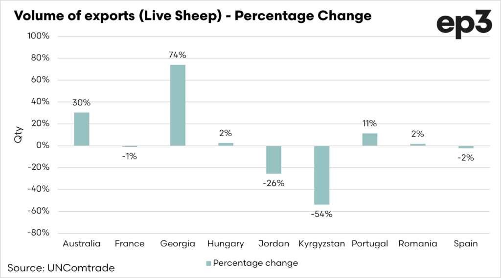- Australia had a significant increase in sheep exports during 2022, increasing by 30%.
