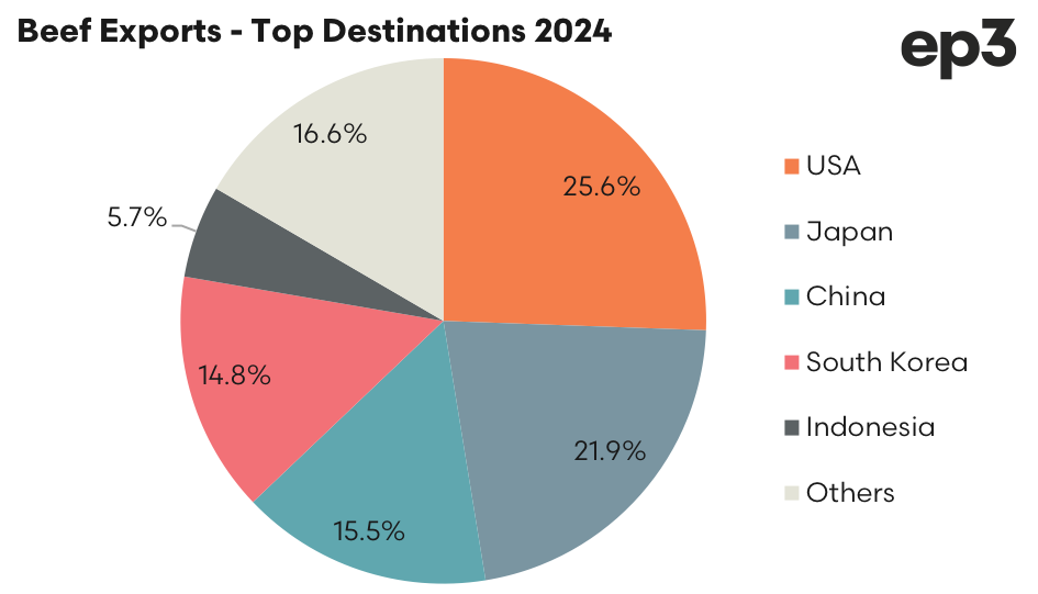 A summary of the top four beef trade destinations is outlined below: